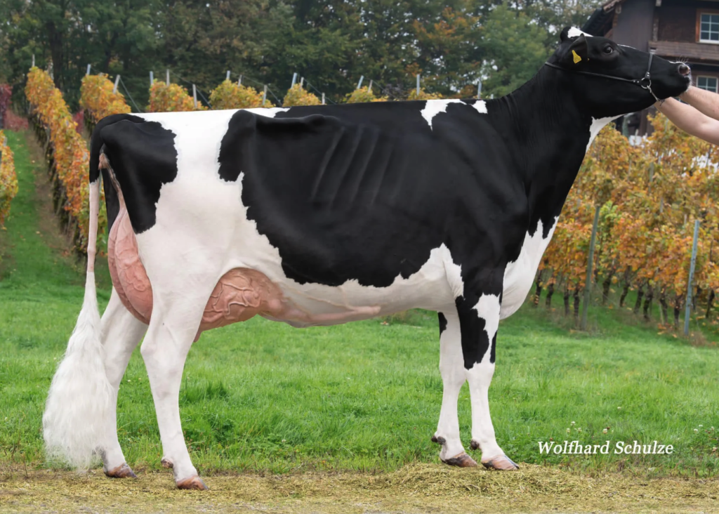 Heute überzeugt die Gapdale-Herde mit einer enormen Leistungsbereitschaft. Verbesserungspotential sieht Nicole Reichmuth im Exterieur, insbesondere im Euterbereich. Sie arbeitet aktuell mit Stieren wie Delta-Lambda, Spartan, Ambrose und Anahita. Rund 70 Prozent aller Besamungen werden mit gesexten Dosen gemacht, entsprechend kann laufend Nutzvieh verkauft werden. Die Mastbesamungen machen um die zehn Prozent aus. Ab und zu kaufen sie und ihre ebenfalls zuchtinteressierten Brüder auch Embryonen aus interessanten Kuhfamilien zu, vereinzelt spülen sie auch eigene Tiere. So wie beispielsweise Gapdale Rambo Heaven, von der eine grosse Zahl an weiblichen Nachkommen registriert sind. Heavens älteste Tochter ist Gapdale Eliot Hennessy, die an der Schwyzer Eliteschau 2023 Abteilungssiegerin wurde. Eine wertvolle Zuchtkuh ist auch Gapdale Fitz Fancy. Sie produzierte in vier Laktationen bereits 75 000 kg Milch und wurde von Holstein Switzerland im letzten September mit der Goldmedaille ausgezeichnet. Zudem wurde sie im letzten Dezember, als erste selbst gezüchtete Kuh, mit Exzellent klassiert.